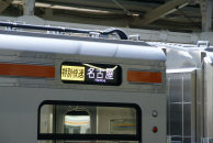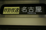 近づいて見たLED表示器。“名古屋”は約25×25ドット,“特別快速”は約20×20ドットで見やすいが,“Nagoya”は大文字が縦7×横5,小文字が5×4ドットしかなくて,見やすいとはいえない。