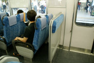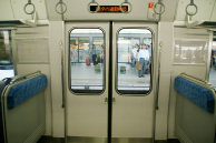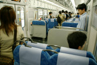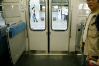 ドアに近い座席に座ってドア側を向いた時には,目の前についたてが立っている。ついたてがある分だけ,立ち客用のスペース(ドアポケット)が狭くなった。
