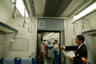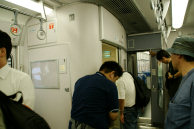 サハ313-5001の大垣側車端部。ドアは自動的に閉まるので,JRの係員が押さえていた。