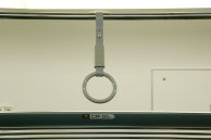 車端部に取り付けてある楕円形の銘板。上は“東海旅客鉄道”,下は日本車輌の会社マーク,“日本車輌”,製造年“2006”が刻まれている。