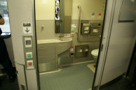 クハ312-5001のトイレ。従来タイプに比べてかなり広く,機能も豊富のようだ。