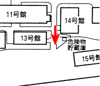 13号館の東にある階段付近から南の方を見ました。