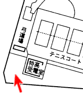 右側の高いフェンスの後方には弓道場があります。