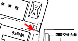53号館(教養棟)と体育館の間にある道を