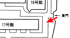東門のすぐ近く,17号館の東出入口付近です。